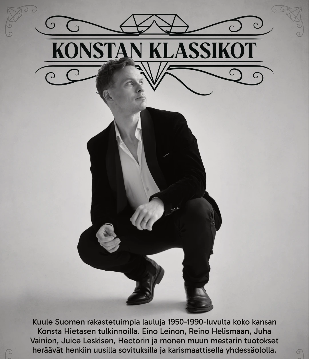 Kuule Suomen rakastetuimpia lauluja 1950-1990-luvuilta, koko kansan Konsta Hietasen tulkinnoilla!