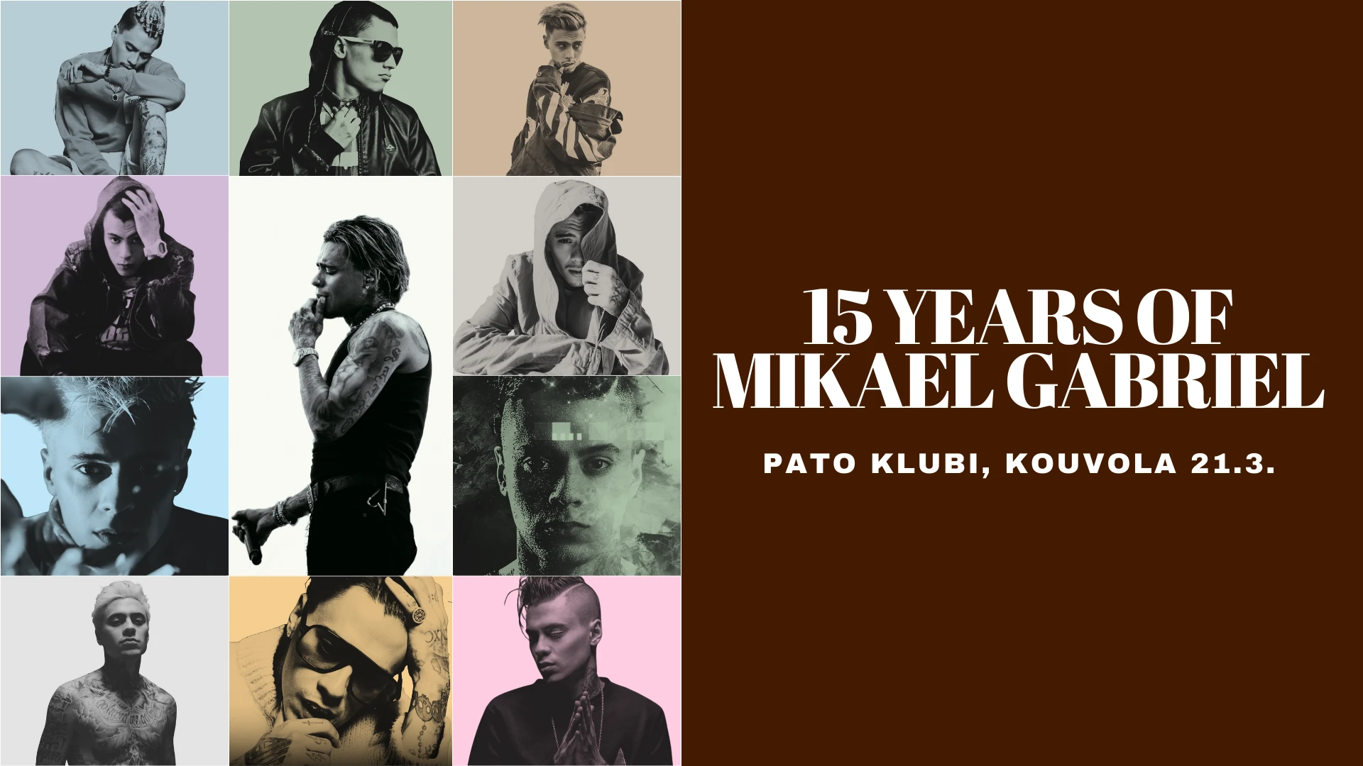 Suomen rapin ja popin kirkkaimpiin tähtiin lukeutuva Mikael Gabriel juhlistaa huikeaa 15-vuotisen uran merkkipaalua ainutlaatuisella tavalla Pato Areenalla 21.3.2026.
